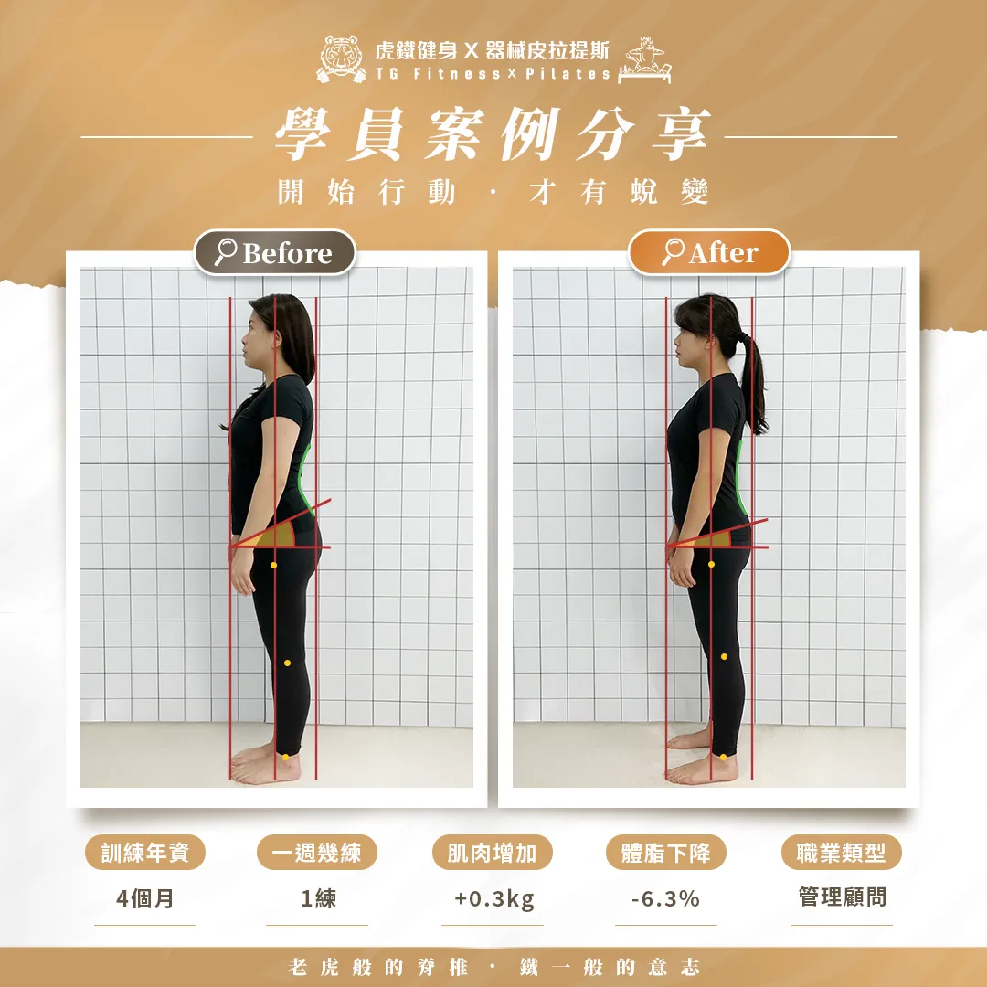 ➤搭配教練拍照體態評估可以看出體態狀況。